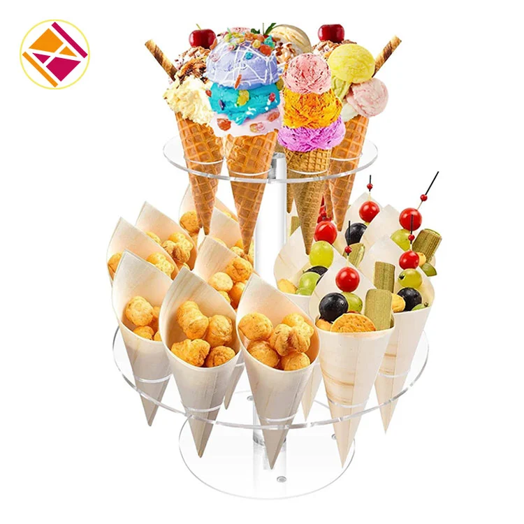 24洞冰淇淋蛋筒支架被用作婚礼,生日聚会和周年庆典的甜点桌的核心,以营造出精致的氛围。