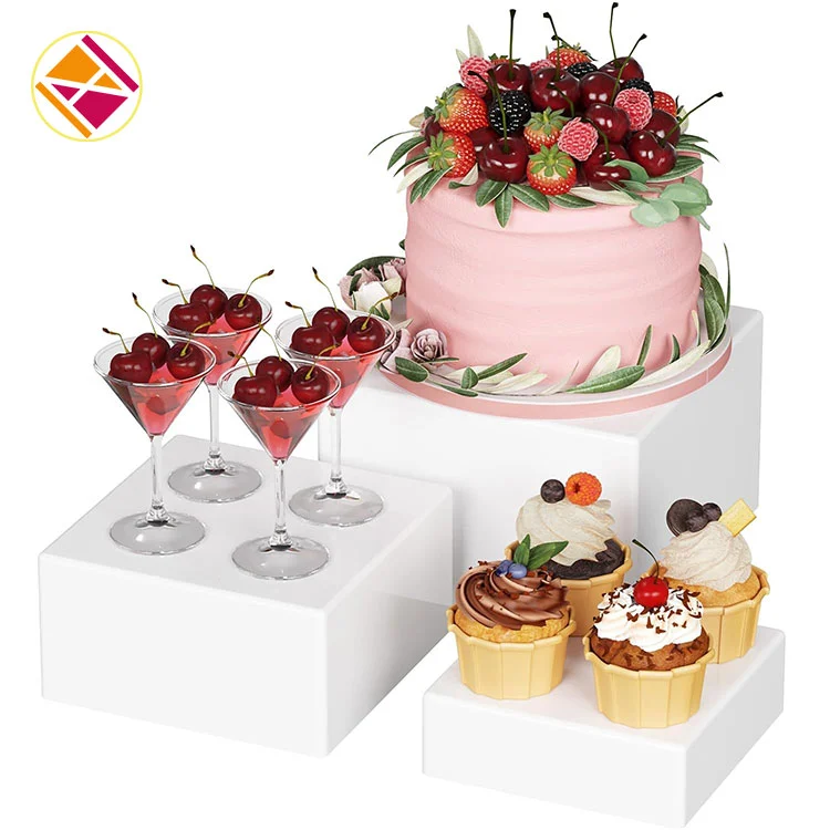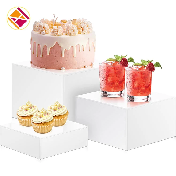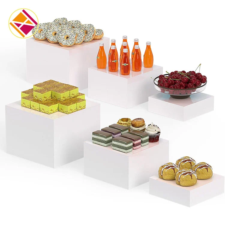 丙烯酸立方体立管套件可用作宴会和婚礼的甜点桌和葡萄酒吧的分层显示屏,以增强活动的风格。