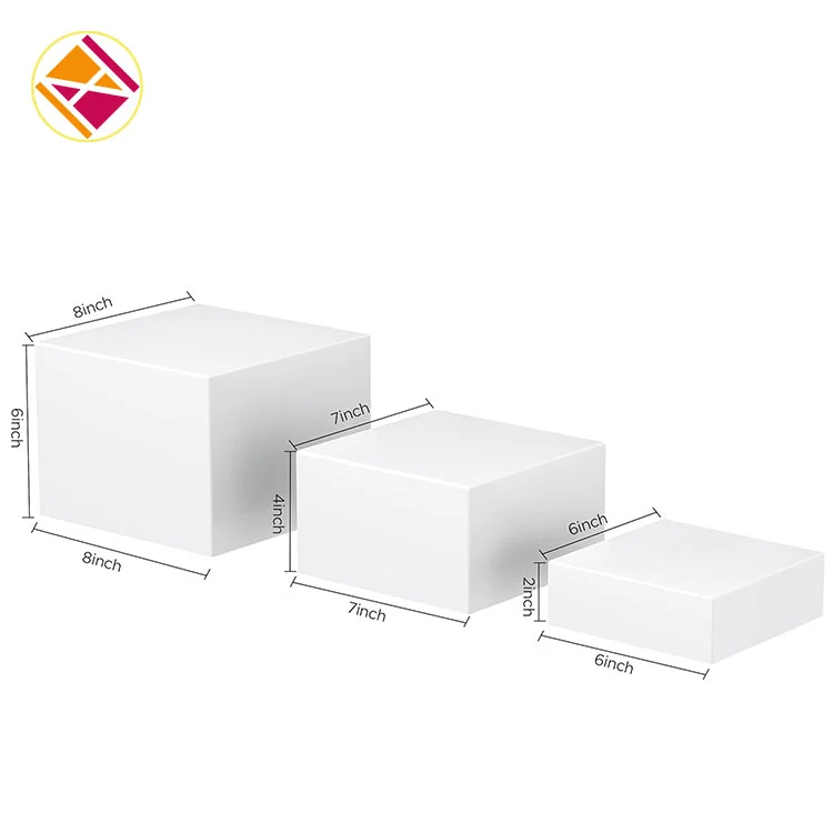 丙烯酸立方体立管组通常包含多个不同尺寸的立方体,可以单独堆叠或单独使用以满足不同高度和显示级别的需求。